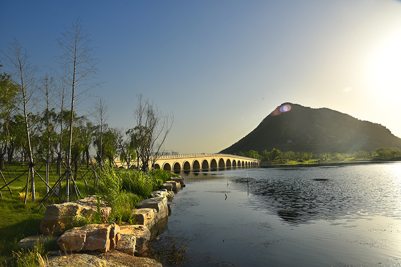 崇正橋,位于華山南側(cè),連接華山及華山湖南岸,總長(zhǎng)約 96 米,為三孔拱橋,是華山濕地公園的重要門戶。煙雨橋,位于華山東側(cè),橋梁全長(zhǎng)約 200米,為 21 孔拱橋,狀若長(zhǎng)虹臥波,是華山濕地公園的優(yōu)美名片。